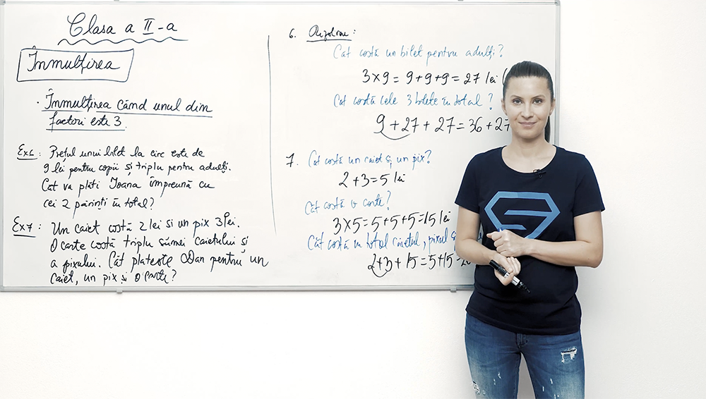 Video cu probleme descriptive de înmulțire cu trei în contexte atractive, precum pizza la petreceri, costuri de iarnă și bilete la circ. Lecția explică pas cu pas transformarea textului în operații 3 × a și calculele în care învățăm triplul numerelor, oferind elevilor claritate și exemple concrete pentru rezolvare rapidă. Activitățile stimulează gândirea logică și familiarizarea cu operația de înmulțire.