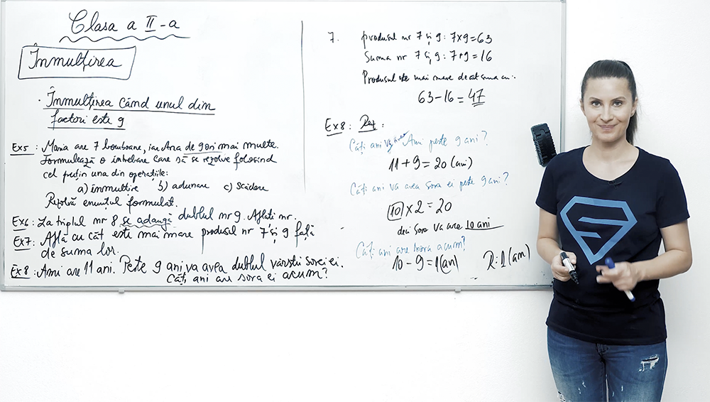 Exersează adunarea, scăderea și înmulțirea prin probleme cu bomboane, vârste și comparații amuzante. Descoperă cât are fiecare copil și cât e mai mare unul decât altul prin calcule simple și logice. Înveți cum să rezolvi pas cu pas și să formulezi întrebări matematice clare.