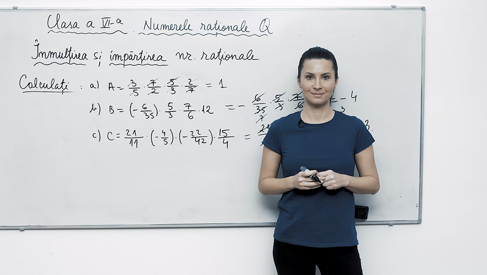 În această lecție video despre înmulțirea și împărțirea numerelor raționale vei învăța regula semnelor și cum să aplici formulele pentru fracții supraetajate. Prin exemple pas cu pas, descoperi cum să înmulțești numărătorii și numitorii, cum să inversezi fracția la împărțire și cum să faci simplificări între numaratori si numitori înainte de calcule, pentru rezultate rapide și corecte.