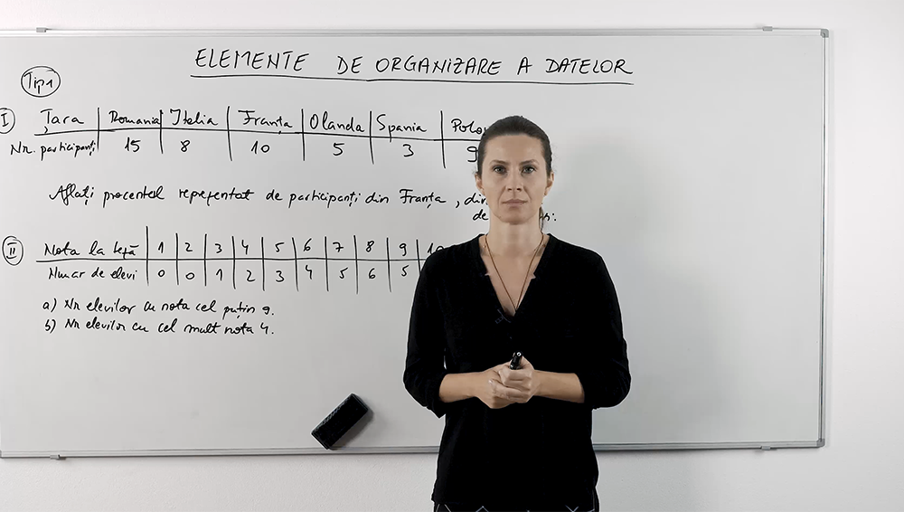 Învață cum să interpretezi tabele, grafice de bare și puncte, să calculezi procente și să extragi cele mai importante informații. Lecția video prezintă exemple din viața reală, arătând pașii de citire și calcul rapid al valorilor: total participanți, procente, diferențe și valori minime/maxime.
