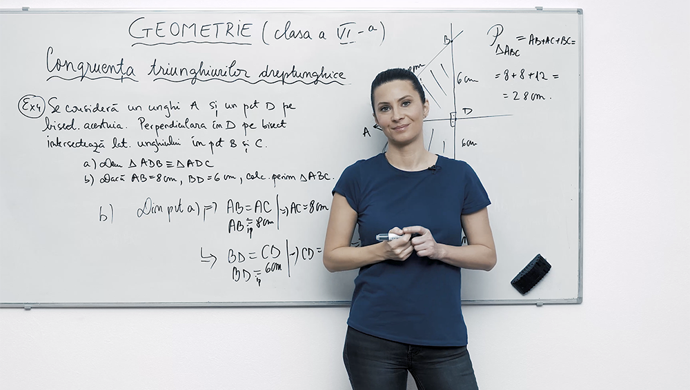Explorează cum bisectoarea unghiului și înălțimile construiesc triunghiuri congruente! În această lecție video vei vedea demonstrații pas cu pas pentru diverse probleme: întâi congruența unor triunghiuri determinate de bisectoare, apoi calculul perimetrului unui triunghi folosind segmente congruente. Lecția folosește criteriul unghi-latură-unghi și prezintă clar cum să găsești lungimi folosind congruența triunghiurilor.
