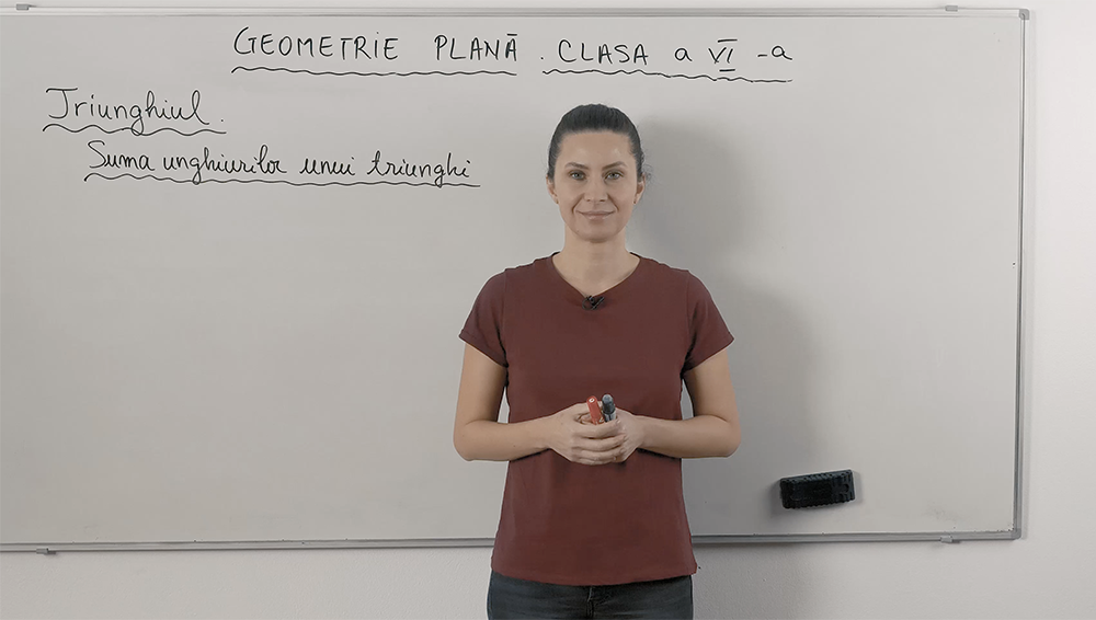 Sumă unghiuri, triunghi, unghi exterior. În această lecție video descoperi de ce suma unghiurilor interne ale oricărui triunghi este întotdeauna 180° și cum funcționează proprietățile unghiurilor exterioare. Prin desenarea unor paralele și exemple vizuale, vei înțelege ușor demonstrația și vei vedea cum unghiurile exterioare se raportează la cele interioare. Lecția oferă explicații simple și clare pentru a-ți consolida bazele geometriei.