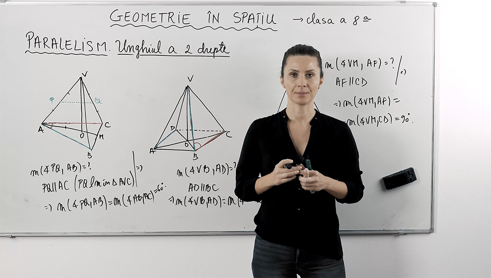 Explorează unghiurile dintre drepte necoplanare în diverse piramide: triunghiulară, patrulateră și hexagonală. Lecția arată pas cu pas cum să identifici paralele folosind linii mijlocii și apoteme, transferând problema din spațiu în plan. Vei învăța să alegi drepte suport, să aplici Teorema lui Thales și să determini rapid măsura unghiurilor chiar și în figuri complexe, folosind exemple clare în piramide regulate. Explicațiile clare și logice îți oferă o bază solidă pentru a rezolva orice exercițiu de geometrie spațială.
