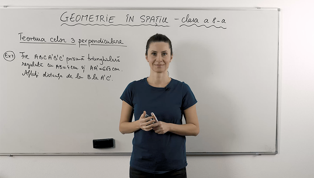 prismă triunghiulară regulatăteorema celor trei perpendicularedistanţă punct-dreaptătriunghi echilateralPitagora