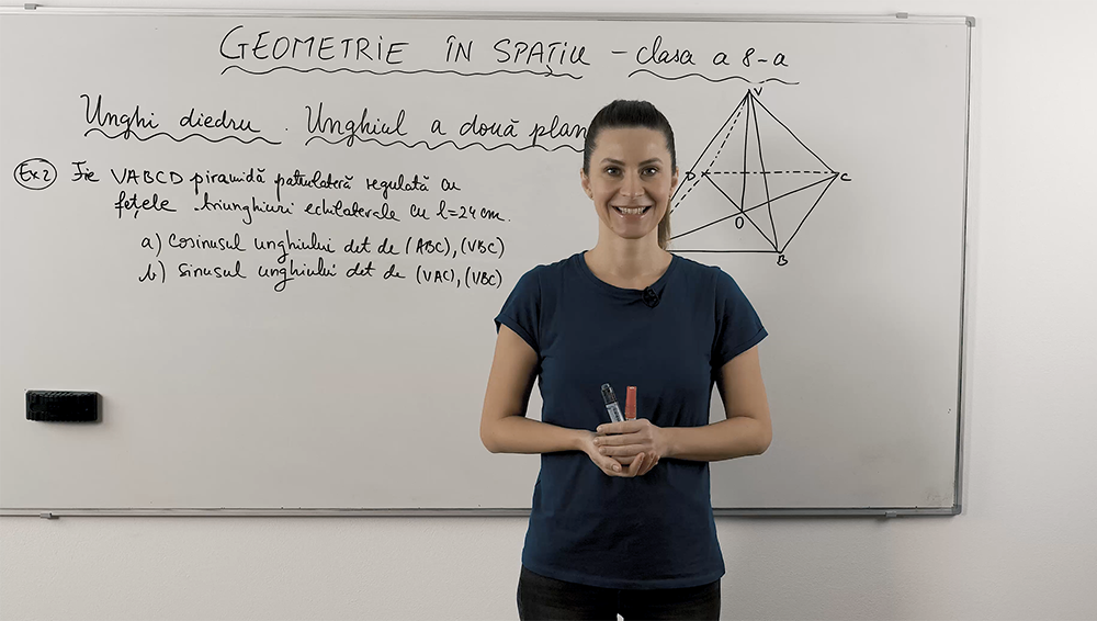 piramidă regulatăcosinus unghi diedrumedianăapotemăplanuri 3Dtrigonometrie spațială