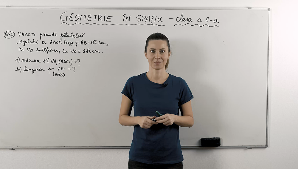 Explorează cum afli măsura unghiului format de o dreaptă și plan într-o piramidă patrulaterală regulată și cum determini lungimea proiecției unei muchii pe planul bazei. Lecția video prezintă construirea proiectiei dreptei și aplicarea funcțiilor trigonometrice în triunghiuri dreptunghice. Vei înțelege rapid cum transformi problemele de geometrie în spațiu în exerciții simple de geometrie în plan.